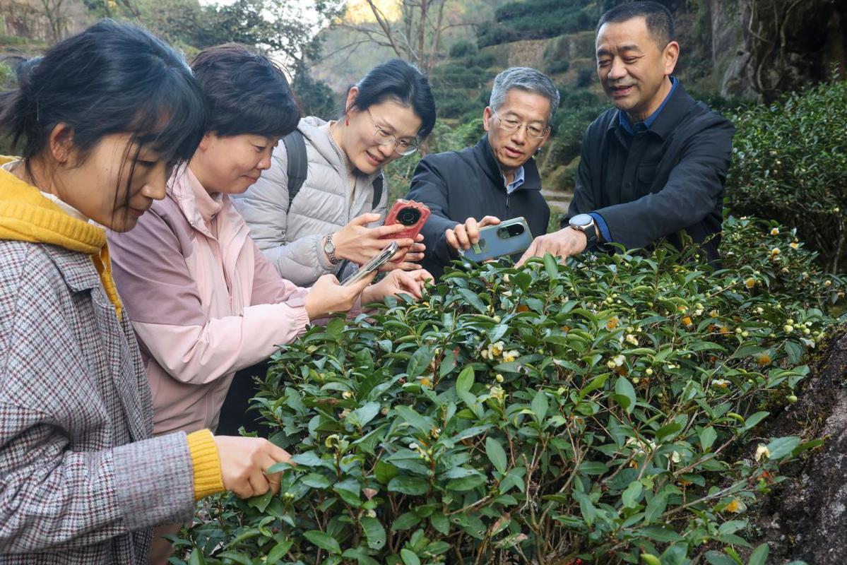 当天,国家古茶树保护与可持续利用创新联盟暨西南林业大学古茶研究中心秘书长蓝增全教授、西北农林科技大学龚春梅教授等一行五人在研发与产业国际高级领导叶远高的陪同下参加了会议。古茶树资源保护与可持续利用研究组深入武夷山考察茶树古源。我们去了汇源行、九楼吴巢、竹坑等地对古茶树资源保护和利用现状进行现场调查。专家边走边看,为当地茶园管理从土壤改良、生态保护到绿色防治提供技术指导。天心明月茶公司总经理陈克春介绍了茶园坚持生态优先、科学管理的具体做法。检查组指出:保护珍贵的古茶树资源,就是保护茶产业发展的基础和中华民族的文化财富。