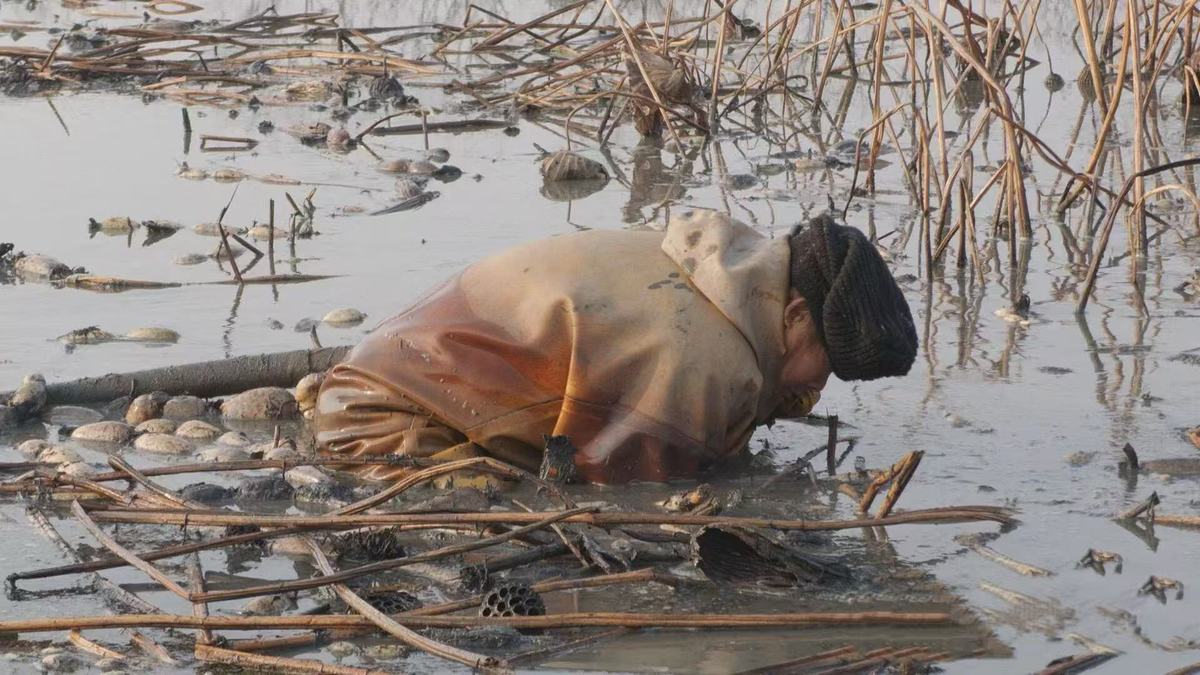 近日,走进河南省南阳市镇平县阳营镇的莲藕田,只见莲藕池早已褪去“连绵青荷叶连天”的郁郁葱葱的夏日风光。莲藕池虽然覆盖着一层棕黄色,但泥土下却藏着沉甸甸的“财富”。采摘莲藕的人穿着防水服,踩着泥巴。他们忙着在荷塘里穿梭,弯腰探泥,拔出莲藕,动作高效流畅。 “我们听指挥,老板要多挖,要少就少干,一天能挣一两百块钱!”采摘莲藕的王凤山擦了擦额头的汗水,脸上挂着淳朴的笑容。